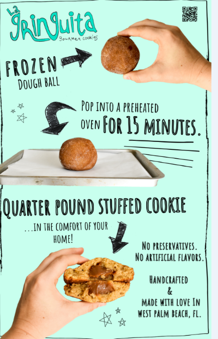 Caroline McGinley is the proud owner and baker behind Gringuita Cookies, an upscale cookie bakery. She’s best known for her giant quarter pound stuffed cookies. The name “Gringuita” means "little American girl" in Spanish and was a name that was given to her while traveling in South America.