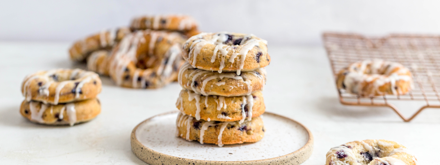 Preheat your oven to 350° F and spray a 6” donut pan with baking spray. Melt the vegan butter on the stovetop and set aside to cool.