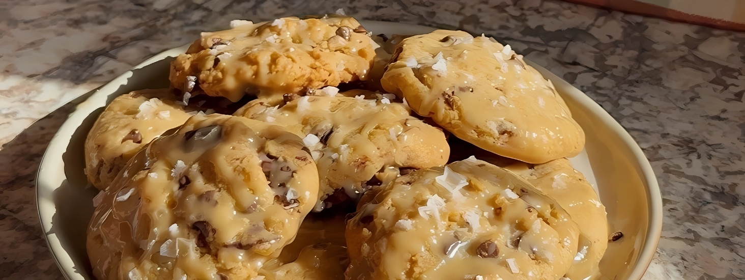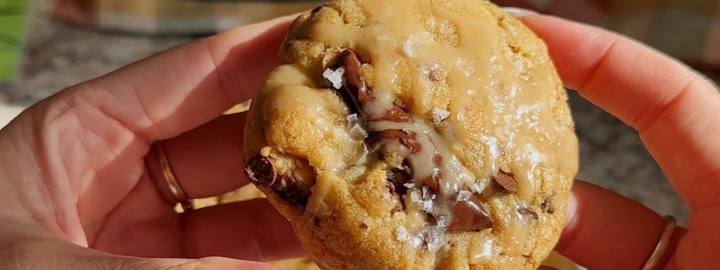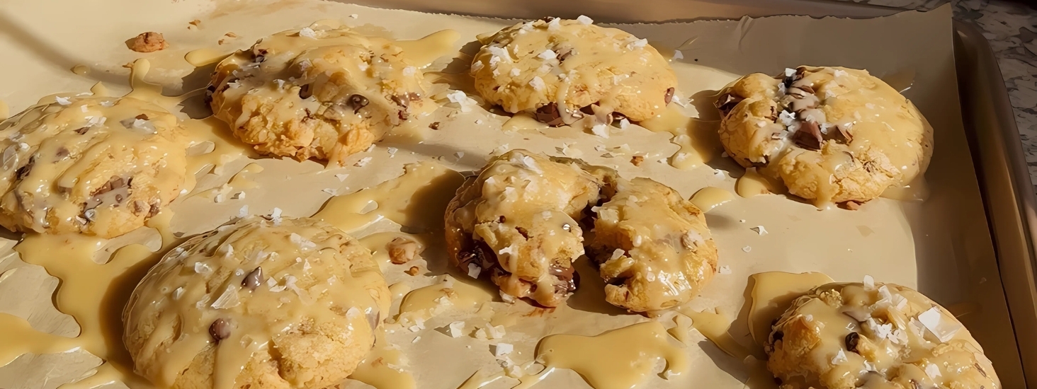 Drizzle your peanut butter glaze over top of your cookies straight out of the oven. Garnish with flaky sea salt, & enjoy!
