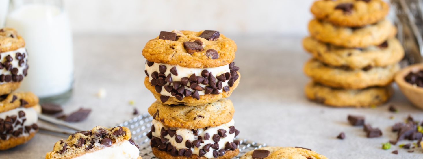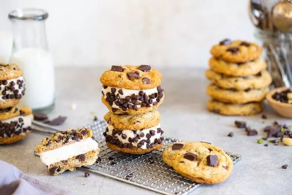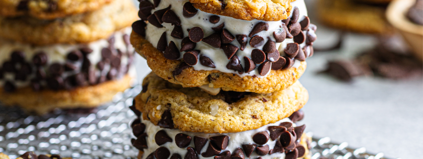 Refrigerate the chocolate chip cookies for 1 hour before preparing the cookie sandwiches to make sure that the ice cream will not melt before you finish preparing them.
