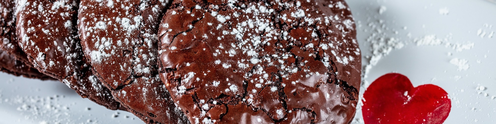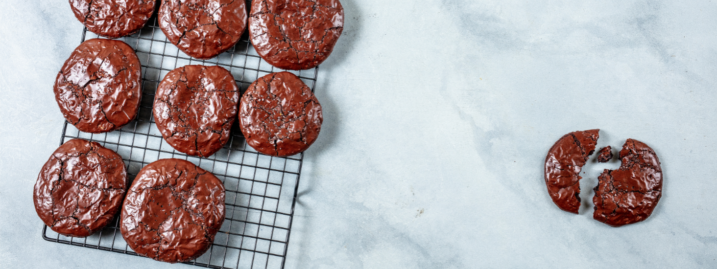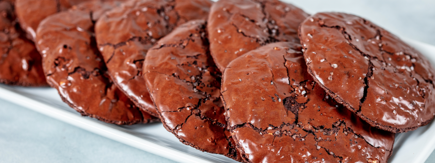 With a small ice cream scoop (2 ounce), scoop the batter into cookie sheets lined with parchment paper. Space the cookies about 2 inches apart. Sprinkle sea salt on top of the cookies. Put the cookies in the oven and immediately lower the temperature to 325°F. Bake for 15 minutes or until cookies look glossy and lightly cracked.