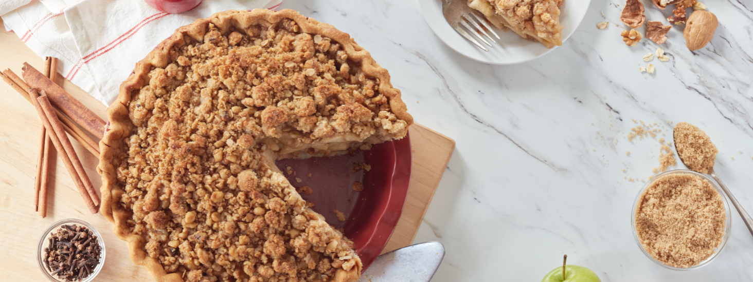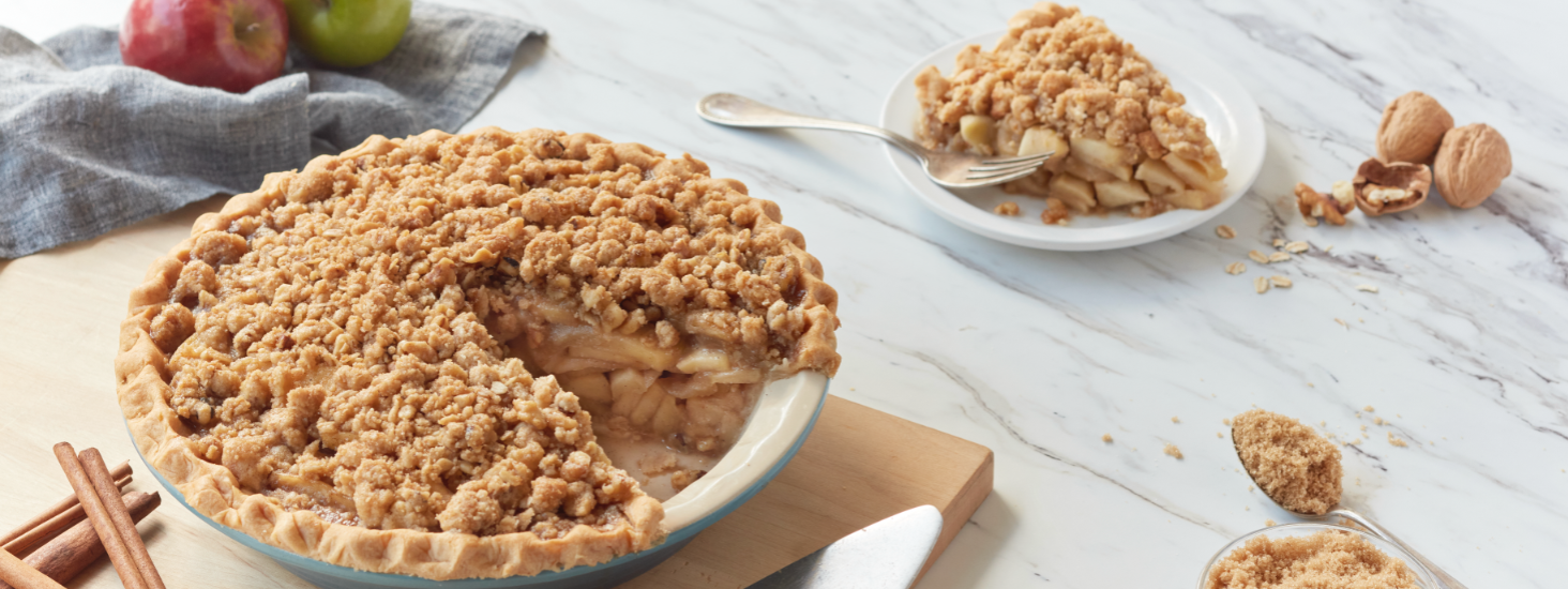 Place the pie on a baking sheet and bake for 1 hour and 30 minutes or until the crust and top of the pie are golden brown. If the crumble is browning too quickly, cover with a piece of aluminum foil. Remove from oven and allow pie to cool down before cutting.