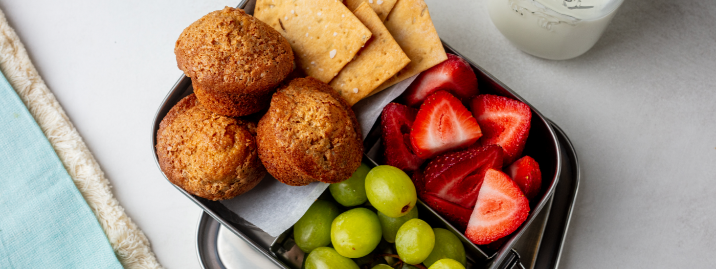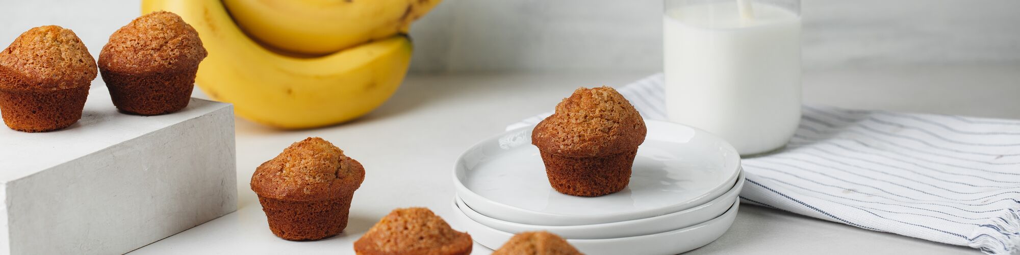 An easy way to fill the muffin cups with batter is by using a pastry bag. Fill the bag with batter and squeeze into the pan.