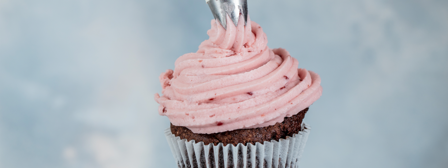 To fill the cupcakes, fill a pastry bag fitted with a small tip with buttercream. Push tip through top of cupcake and work the pastry bag out while pushing buttercream into the cupcake.