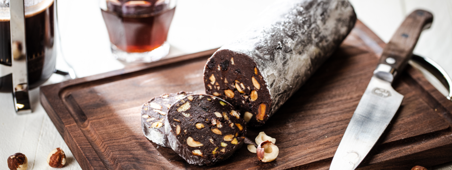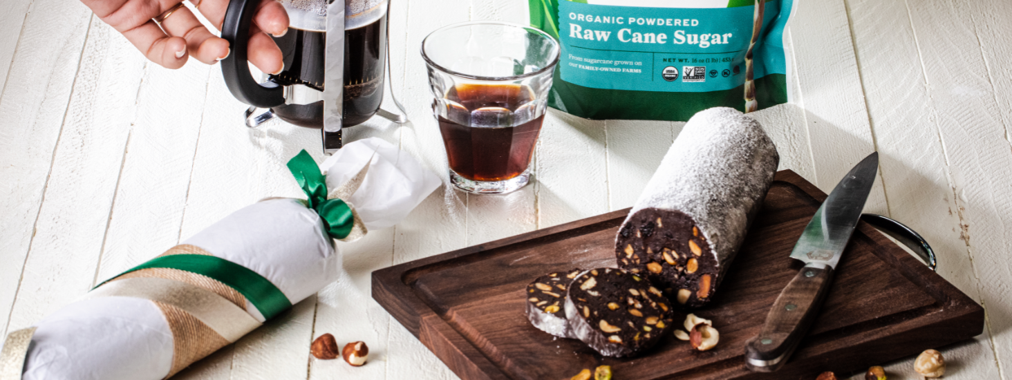 Place in the refrigerator for at least 2 hours. Remove from the refrigerator and before serving, dust all sides with 2 tablespoons of powdered sugar. Using a serrated knife, cut the logs into ¼-inch slices. Serve.