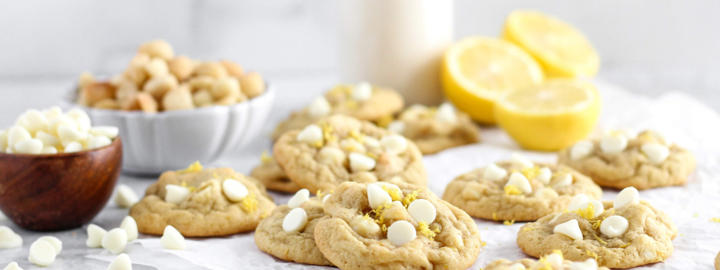 Gently stir in the lemon zest, 3/4 cup of the white chocolate chips, and the macadamia nuts.