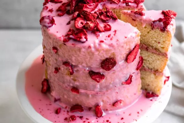 Lemon Tsunami Cake with Strawberry Frosting