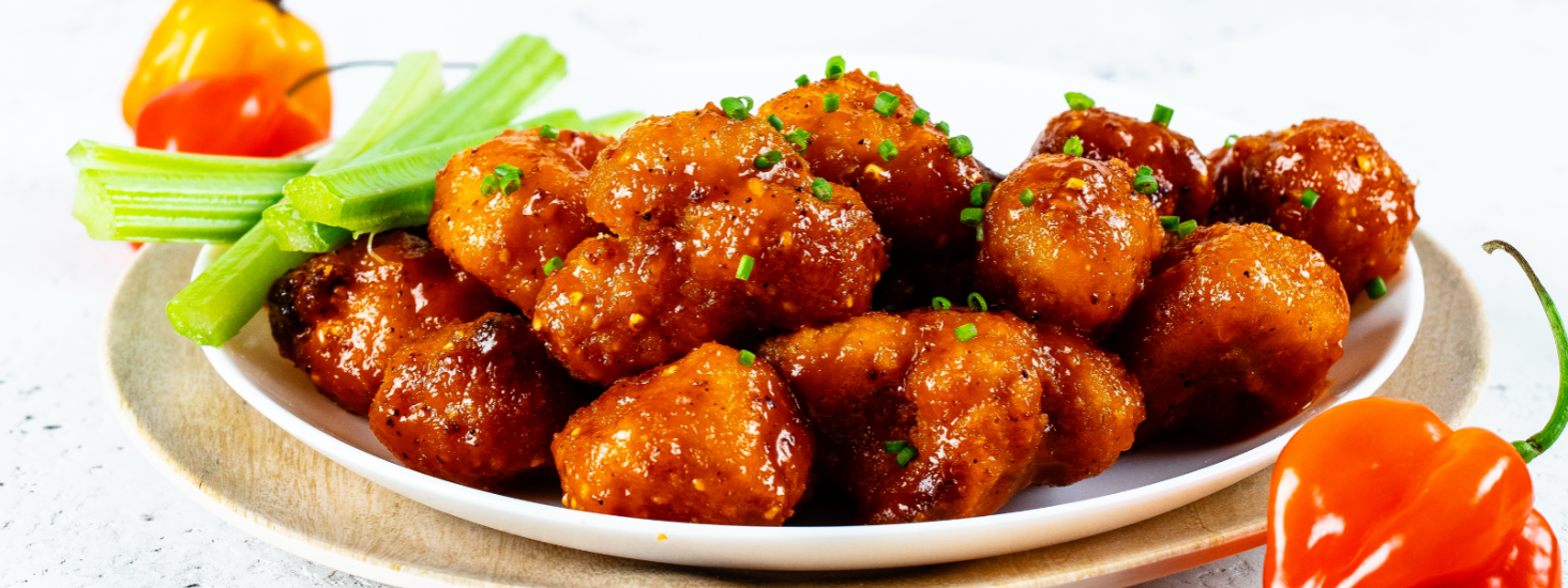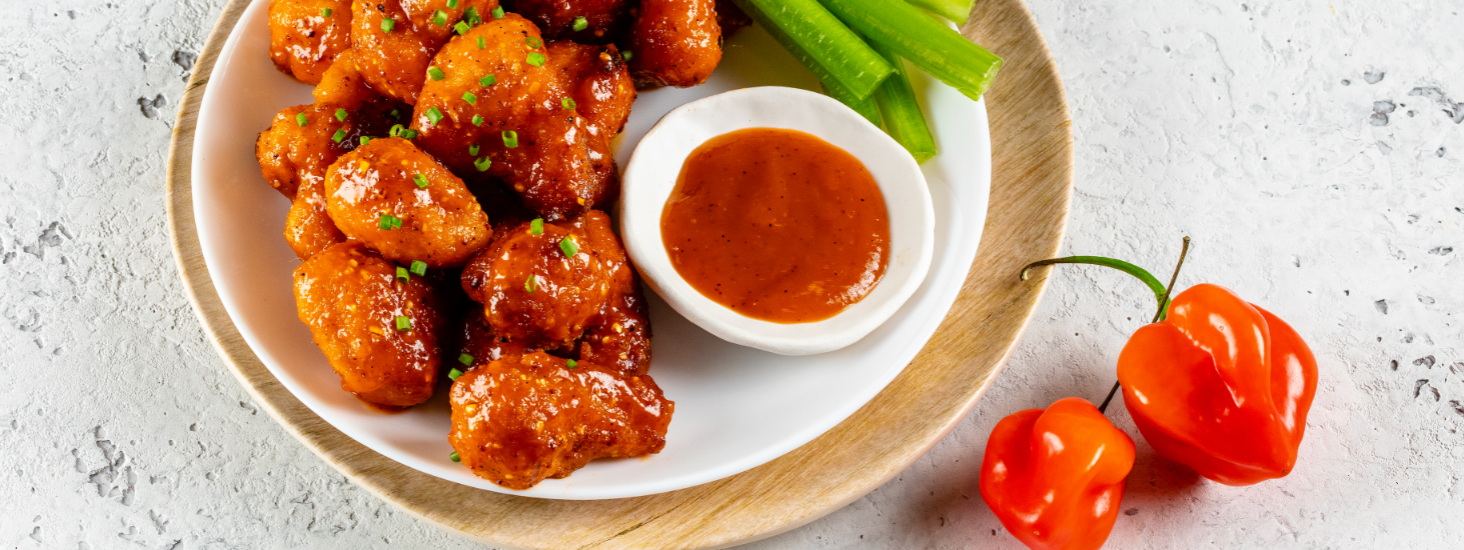 Toss the wings with 1 cup of mango habanero sauce. Place in a serving platter and garnish with chives. Serve with extra sauce on the side and pieces of celery.