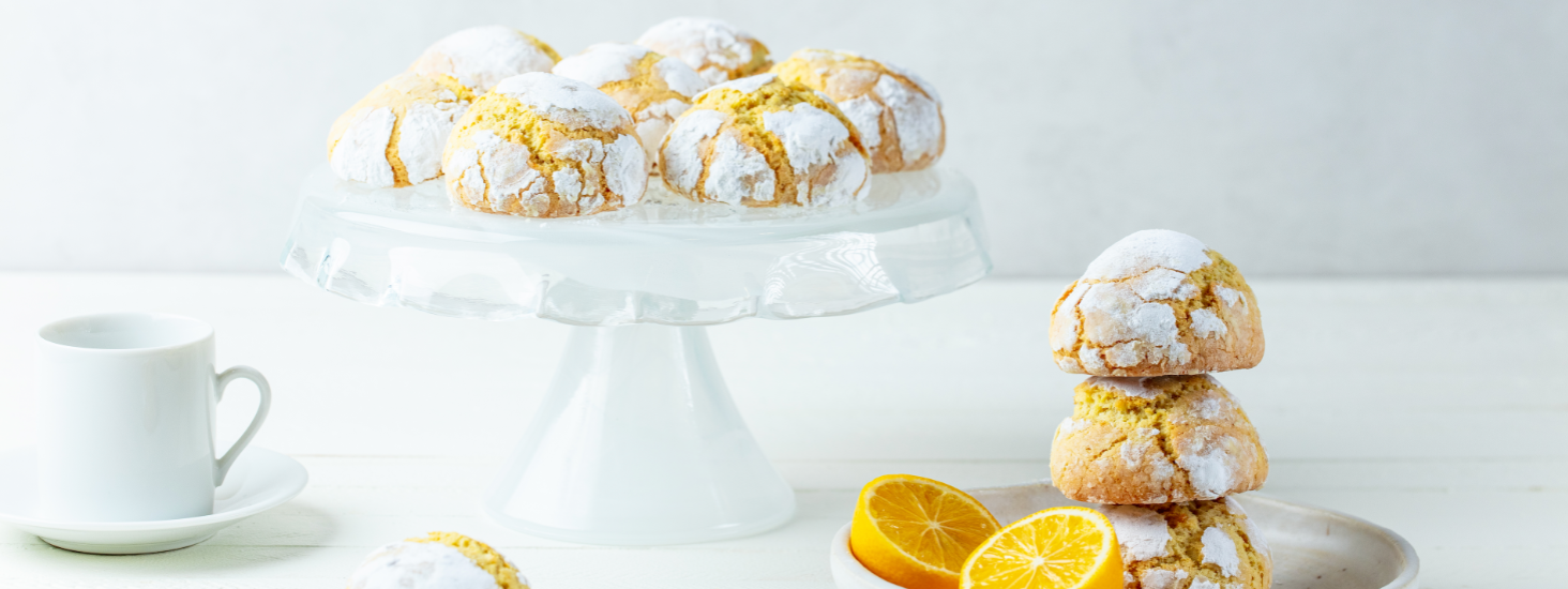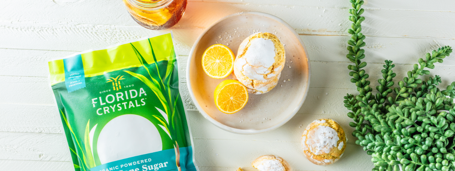 Place Florida Crystals® Regenerative Organic Powdered Sugar in a shallow dish. Using a medium cookie dough scoop, form 15 balls of dough. Roll the dough in the sugar. Place the balls of dough in the prepared baking sheets. Bake for 12-14 minutes until the cookies are puffed and cracked. Allow cookies to rest for 5 minutes on the baking sheets, then transfer to a cooling rack.
