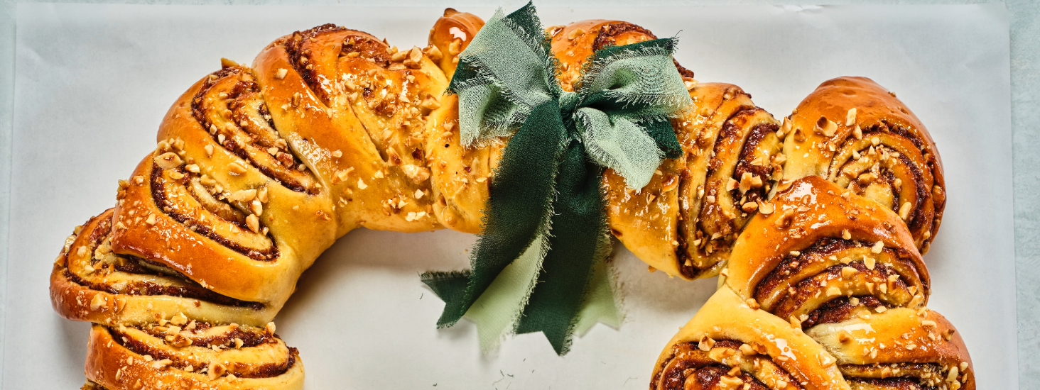 Spread the Nutella® or preferred chocolate hazelnut spread on the dough, leaving a ½ inch border. Use a small off-set spatula to spread out filing. Sprinkle the ½ cup of chopped hazelnuts over the filling.