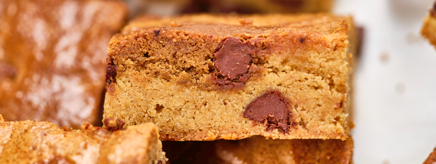 Bake for 25-30 minutes or until a toothpick inserted in the middle of the blondie comes out almost clean. Do not overbake. Remove from oven and allow cooling. Remove from pan and cut into 16 squares.