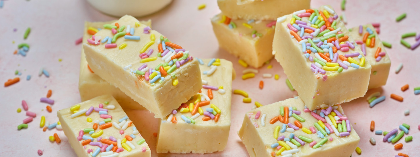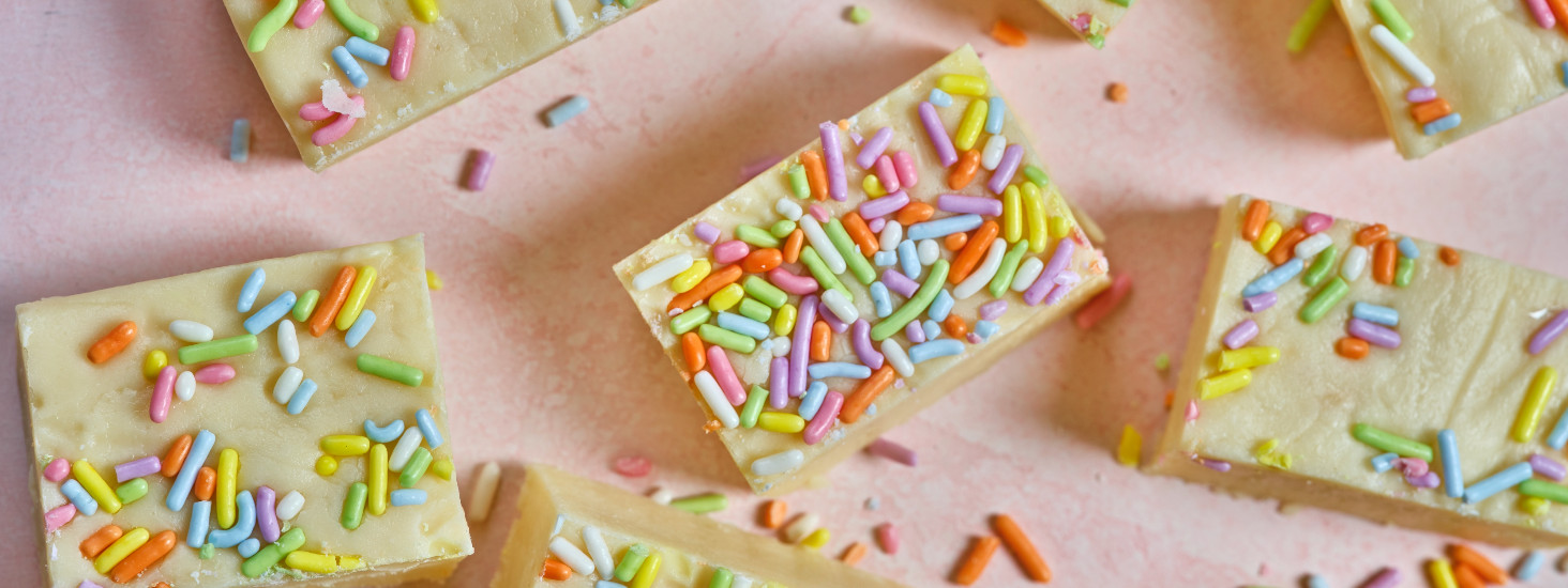 Pour the mixture into the pan and top with the rest of the sprinkles. Allow the fudge to set for 4-6 hours. Cut into 24 pieces.