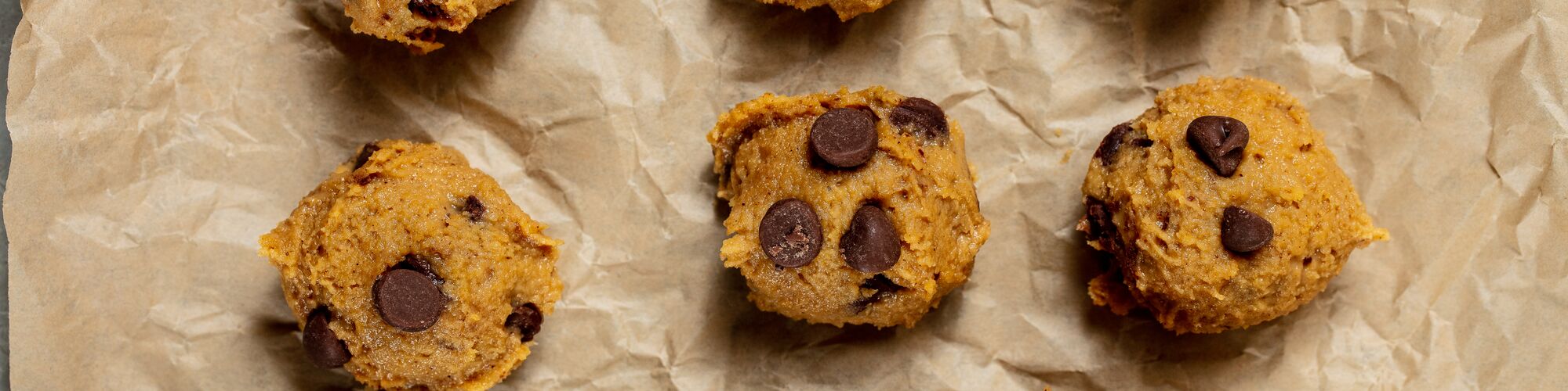 Place all ingredients but the chocolate chips in a food processor. Pulse until a dough is formed. Adjust the consistency of the dough by adding more milk for a softer dough or oat flour for a firmer dough.